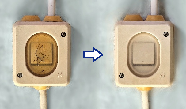 - Pirk først ut det gamle dekslet i bryteren ved å bruke en solid gjenstand (for eks flatskrutrekker).